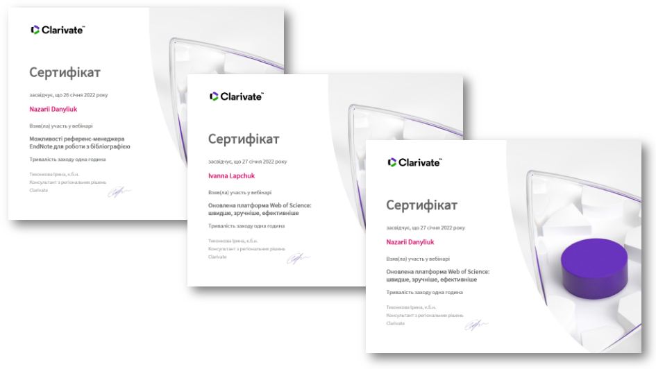Науковці центру – учасники січневих вебінарів від Clarivate Analytics