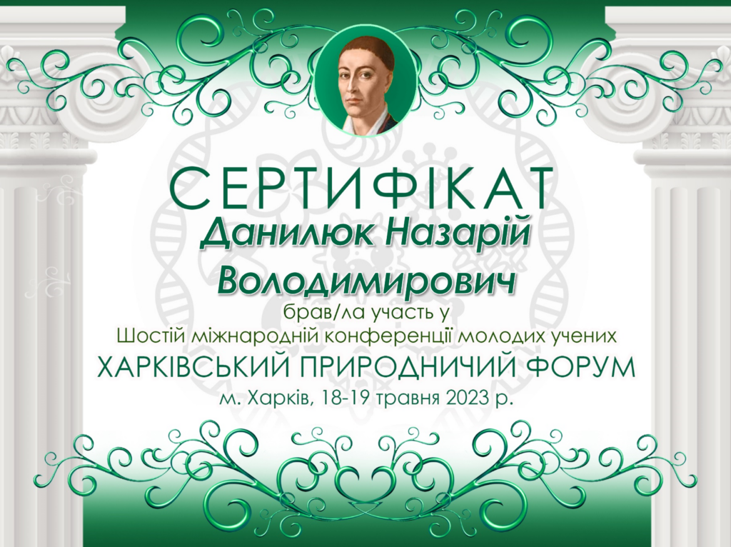 Протягом 18-19 травня 2023 р. провідний фахівець Центру Назарій ДАНИЛЮК взяв участь у Шостій міжнародній конференції молодих вчених «ХАРКІВСЬКИЙ ПРИРОДНИЧИЙ ФОРУМ», яка відбувалася у Харківському національному педагогічному університеті імені Г.С. Сковороди та отримав сертифікат. Варто зазначити, що міжнародна конференція “Харківський Читати далі