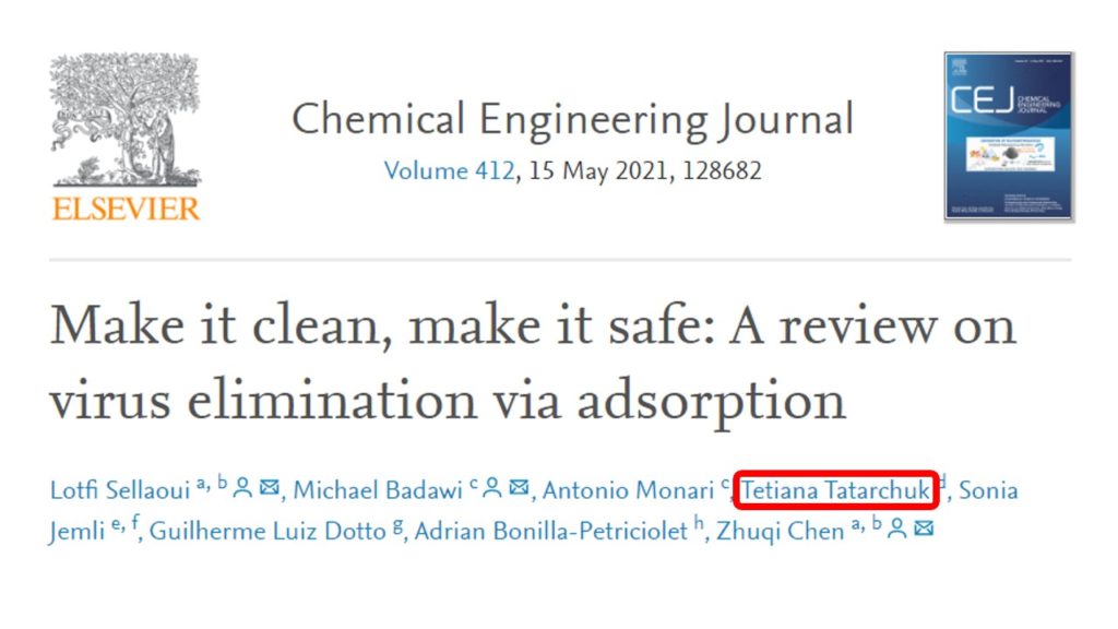 Вийшла у світ оглядова стаття «Make it clean, make it safe: A review on virus elimination via adsorption» , в якій співавтором виступила директорка Центру, доцентка кафедри хімії Тетяна ТАТАРЧУК. Результати кількамісячного аналізу сучасних літературних джерел опубліковані у престижному науковому Читати далі