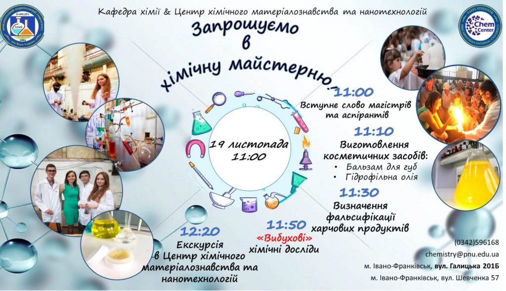 19 листопада 2022 року в рамках профорієнтаційного заходу «Хімічна майстерня», провідний фахівець Центру Назарій Данилюк провів екскурсію для учнів 4-9 класів Івано-Франківських шкіл. Під час екскурсії учні мали можливість побачити прилади, які наявні в лабораторії Центру та ознайомитися з проєктами, Читати далі