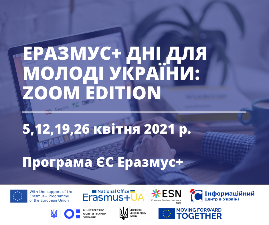 ЕРАЗМУС+ ДНІ ДЛЯ МОЛОДІ УКРАЇНИ: ZOOM EDITION (5, 12, 19, 26 квітня 2021 р.)